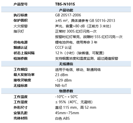 为进一步满足市场多样化需求,优化消防解决方案,8590海洋之神科技NB-IoT新品烟感TBS-N101S正式投放市场。 TBS-N101S是独立式无线感烟报警器,基于NB-IoT标准,具备远距离无线通信能力,无需布线、即买即用;可同时检测烟雾浓度和温度,提升检测准确率;采用新方案设计,有效确保产品电池使用寿命更长;支持声光、电话、短信、平台等多种报警方式,有效预防火灾发生。
